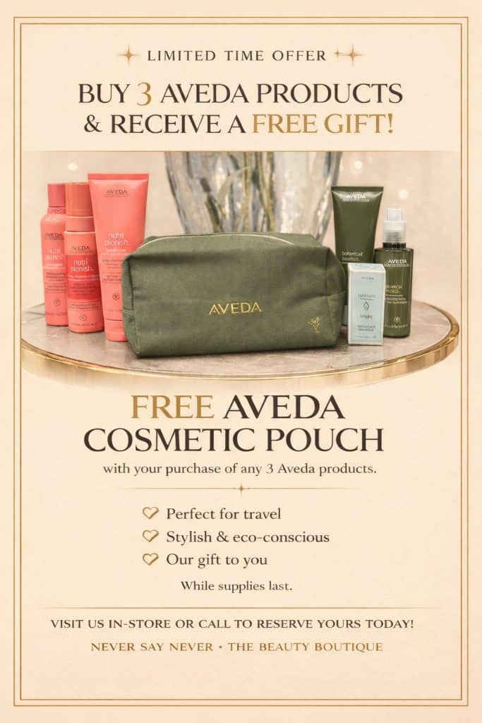 The Never Say Never Aveda Beauty Boutique is run in a professional manner and follows Covid-19 protocols carefully so that all clientele remain safe. Corinne herself has amazing energy and treats all her customers like gold. I always walk out with a smile on my face (and better eyebrows)!